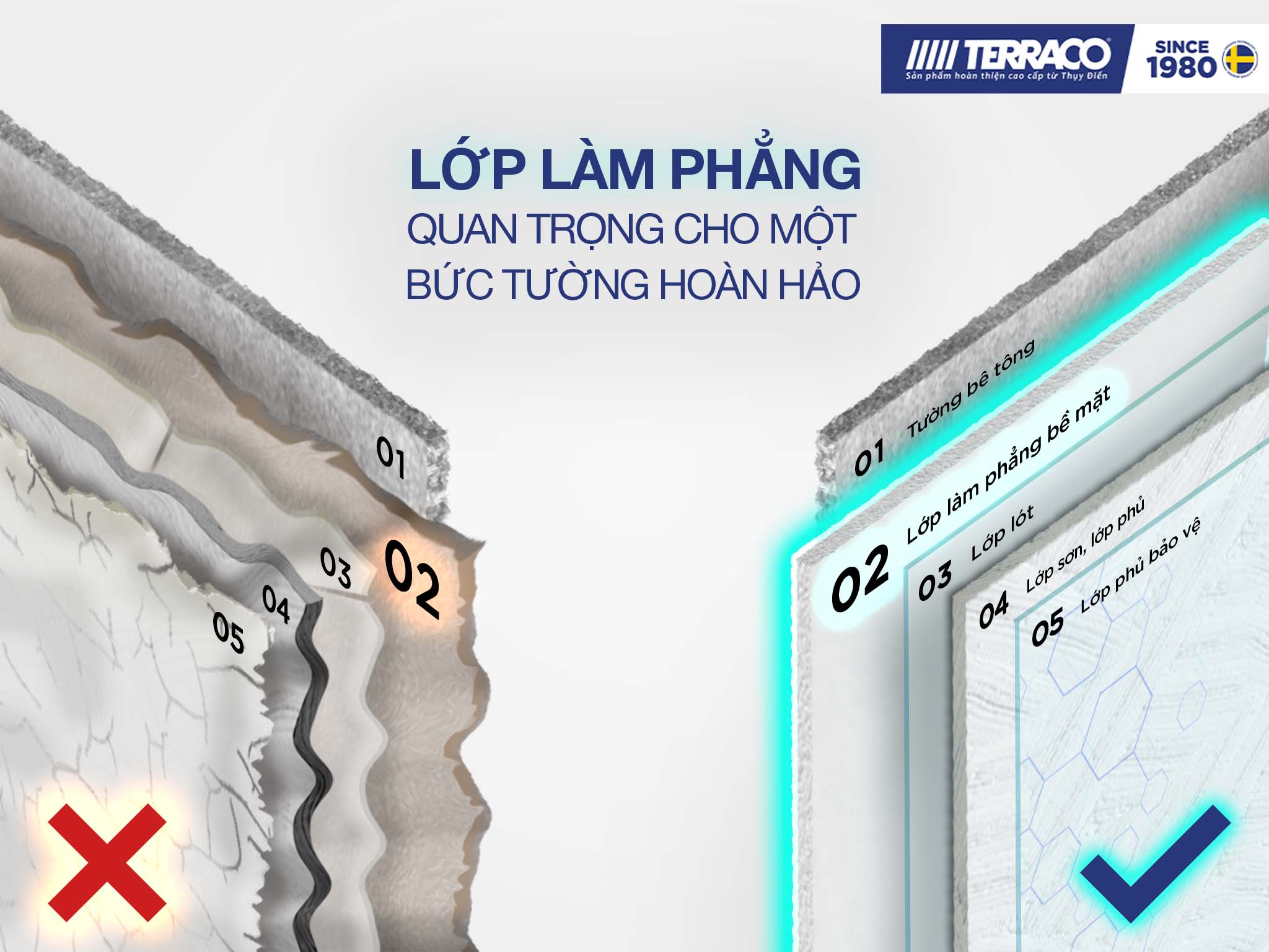 Bạn đang trang trí hoàn thiện tường cho tổ ấm và công trình, hãy cùng Terraco tìm hiểu tại sao lớp làm phẳng - lớp thứ 2 trong hệ thống lại rất quan trọng để có được những bức tường tuyệt đẹp.