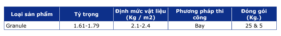 Terracoat Granule là lớp phủ acrylic trộn sẵn, chúng tạo ra sự kết hợp tuyệt vời giữa bề mặt vân gai cao cấp và tính kinh tế nổi bật thông qua việc dễ dàng sử dụng, mức tiêu tốn nguyên liệu thấp và sự bền bỉ của bề mặt. Terracoat Granule có tuổi thọ lâu dài, có khả năng chống lại sự bong tróc và xuống màu. Terracoat Granule kết dính với hầu hết những bề mặt bên trong cũng như bên ngoài của tấm thạch cao, tấm gỗ ép, thép có lớp lót chống gỉ, tường khô thạch cao, vữa cát/ xi măng và bê tông.